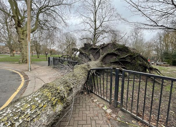 2. Sturm und Hagel: Stürme können Dächer abdecken, Bäume entwurzeln und Fahrzeuge beschädigen. Hagelschauer können Fenster zerschlagen und Fassaden beschädigen.